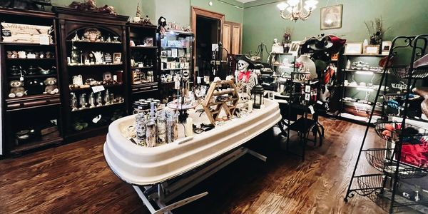A one-of-a-kind spooky shopping experience located in the small town of Marietta, Ohio. Come check out our shop, which is located in the Anchorage Mansion. And yes, that is an embalming table in the middle of our shop. See you soon!
